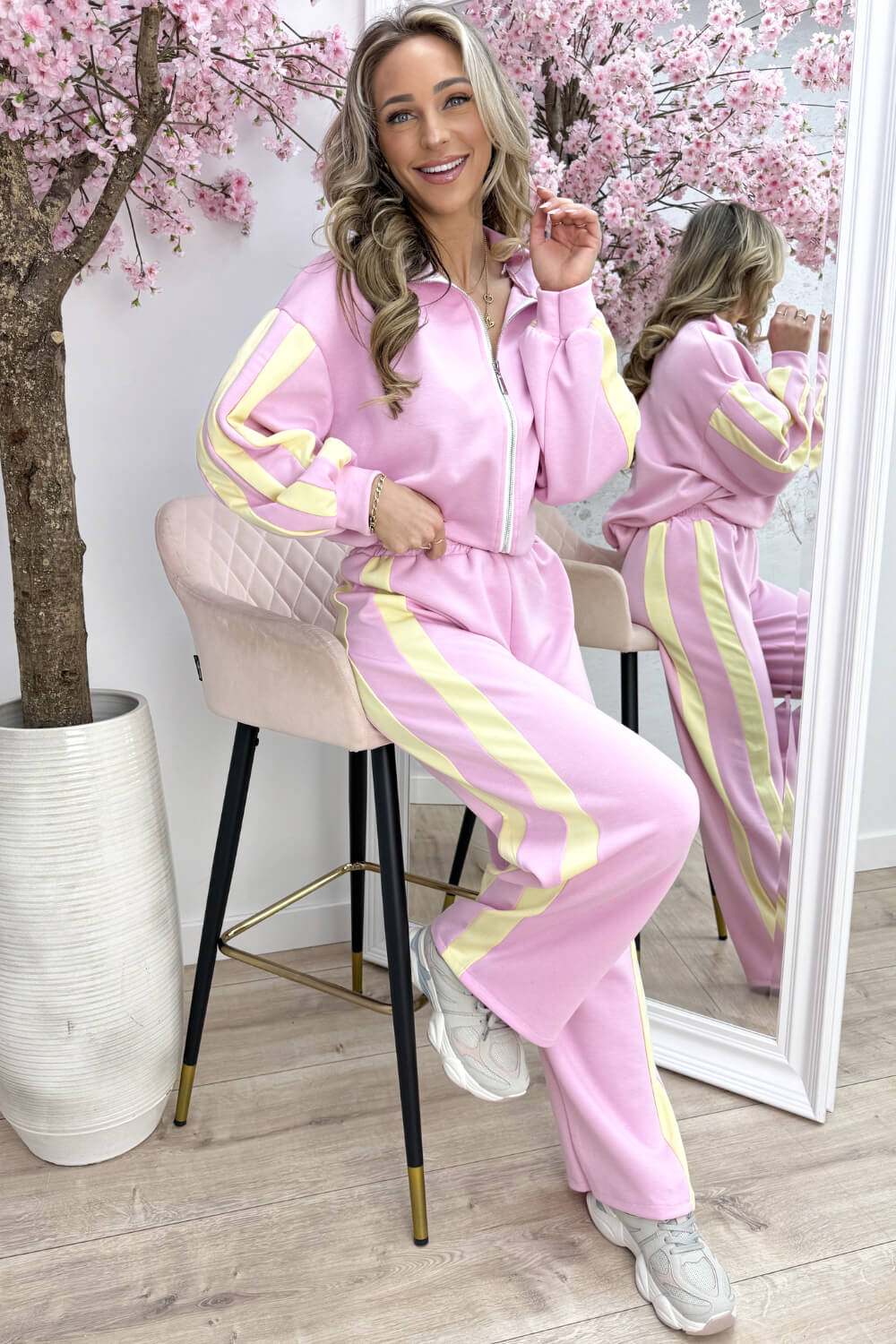 Zip it up stripe comfy co-ord - Lollypop roze
